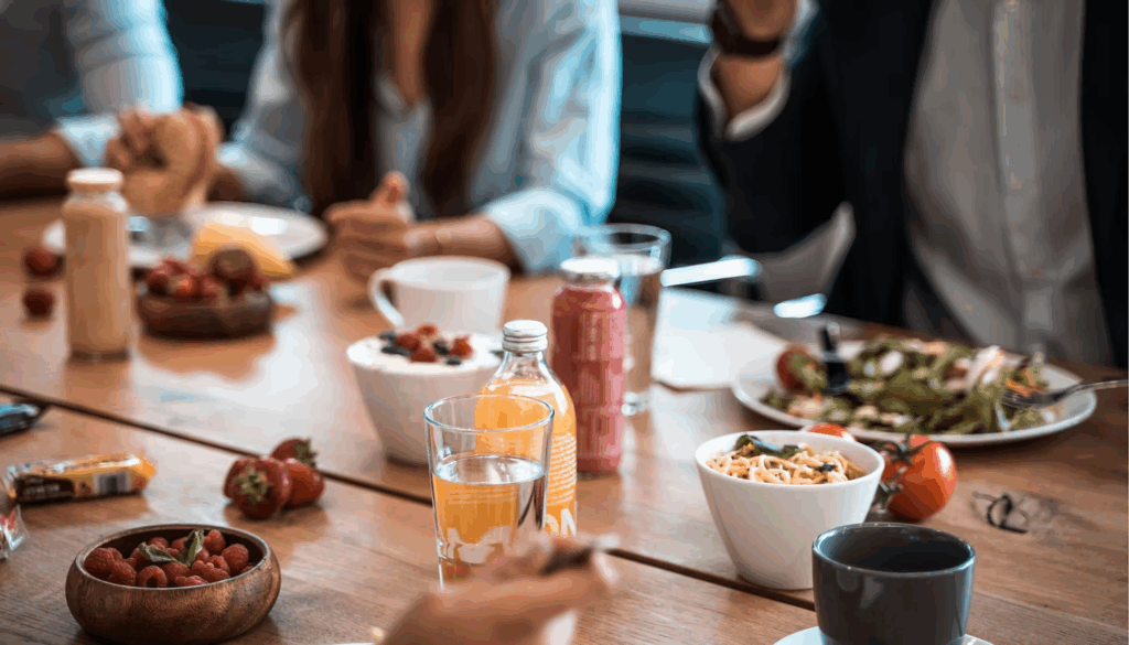 Während der Mittagspause netzwerken und soziale Kontakte knüpfen und dies bei einer gesunden Verpflegungslösung? Diese Verbindung schafft nicht nur einen vollen Magen und Energie für den Rest des Tages. Durch den Austausch mit Kollegen entstehen dabei oftmals innovative Geschäftsideen.